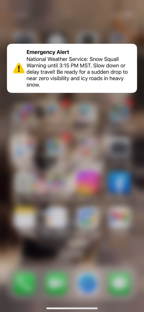 It was just about then that all our cell phones received an emergency alert for a “Snow Squall.” I did not bother to read past the headline. I looked up and asked: “how long is this expected to last?”